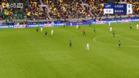 第21分钟,达万精准直塞,法比奥推射破门,国安1-0海牛
