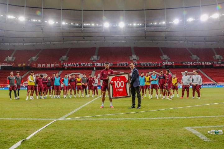 而李帅在中超第26轮上海海港3-2击败武汉三镇的比赛里,完成了代表上海海港队各项职业赛事出场100场的纪录。