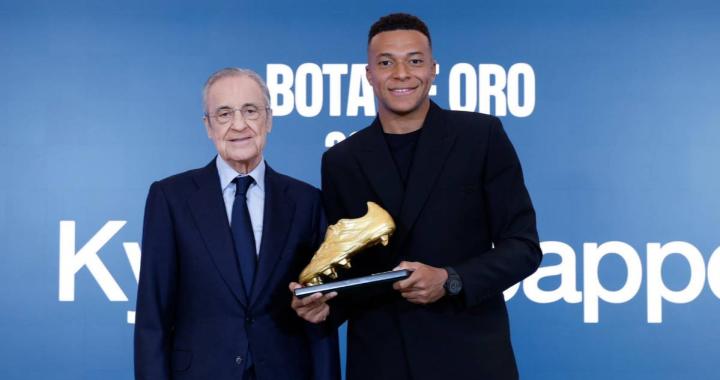 姆巴佩晒出了自己领奖的照片,并配文:“我的第一座欧洲金靴奖,获得这个奖项并被认可为欧洲最佳射手是一种荣誉。非常感谢我的所有队友和皇家马德里俱乐部的所有人,每天都帮助我展现出最佳状态。”