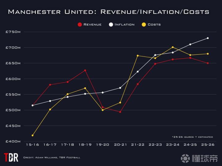 过去数年间,曼联在竞技层面陷入低谷,但凭借强大的商业收入和英格兰最高的比赛日收入,俱乐部得以维持运营,避免陷入财务危机。在2024/25赛季,曼联通过授权、商品销售、活动及其他商业渠道共获得3.33亿英镑的收入,创下俱乐部历史纪录。其中赞助收入占1.88亿英镑。