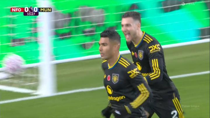 此役客场对阵诺丁汉森林,卡塞米罗在比赛第34分钟接布鲁诺-费尔南德斯助攻头球破门,帮助曼联取得1-0领先。