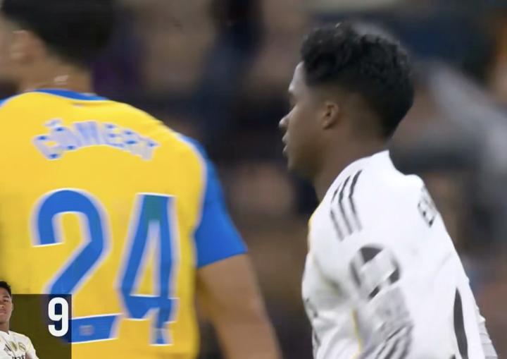 西甲第11轮,皇家马德里主场对阵瓦伦西亚,下半场恩德里克替补登场,迎来赛季首秀。