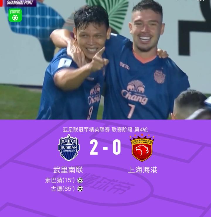 海港0-2不敌武里南联,素巴猜破门,古德建功,李圣龙造险