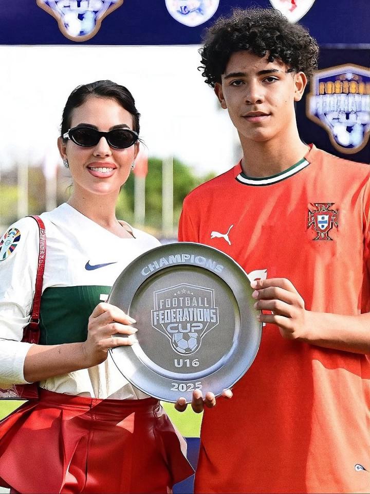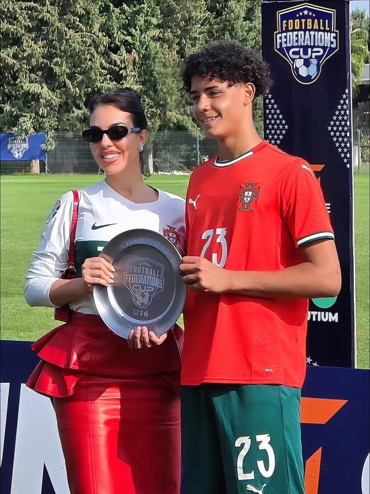 当地时间11月4日,C罗大儿子迷你罗效力的葡萄牙U16夺得联合会杯锦标赛冠军,乔治娜和C罗母亲现场见证。
