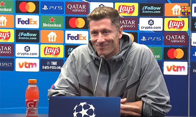 巴萨前锋莱万随主帅弗里克出席了欧冠赛前发布会,本轮他们将做客挑战比利时球队布鲁日,波兰中锋谈到了个人的状态和合同问题。