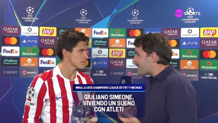 本赛季欧冠联赛阶段第4轮,马竞主场3-1战胜圣吉罗斯联合。马竞球员朱利亚诺-西蒙尼接受了TNT体育的赛后采访。