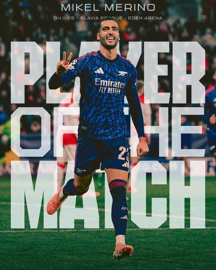 在今天凌晨进行的欧冠联赛阶段第四轮比赛中,阿森纳客场3-0击败布拉格斯拉维亚,赛后,梅里诺被阿森纳评为本场比赛队内最佳球员。