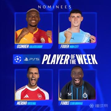 北京时间11月6日,欧冠周最佳球员候选名单公布,入围的四名球员分别为奥斯梅恩、福登、梅里诺、福布斯。