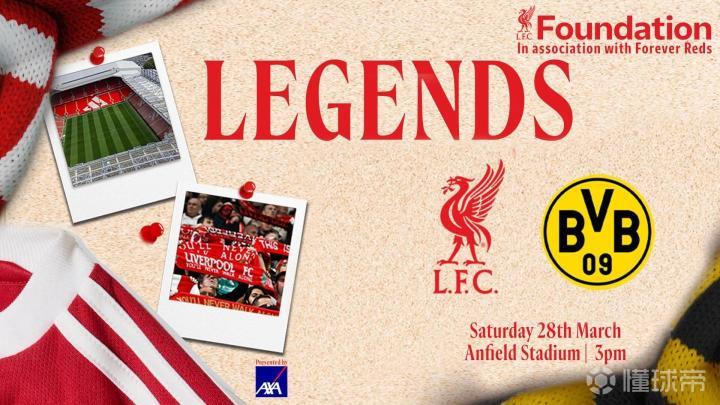 官方消息,利物浦传奇队将于明年3月28日在安菲尔德与多特蒙德传奇队进行一场慈善赛。