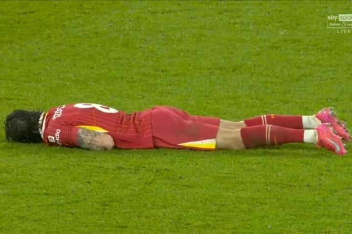 上赛季的一个标志性画面是:二月份在伊蒂哈德球场对阵曼城的比赛终场哨响后,索博斯洛伊瘫倒在草皮上,脸朝下——在那场利物浦2-0获胜的比赛中,他奉献了全场最佳表现,直到跑不动为止。当他站起身时,曼城主帅瓜迪奥拉上前向他致意,表达赞赏。