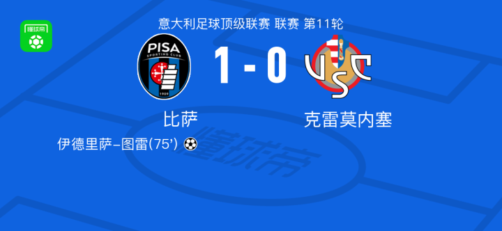 比萨1-0克雷莫内塞,伊德里萨-图雷一击制胜