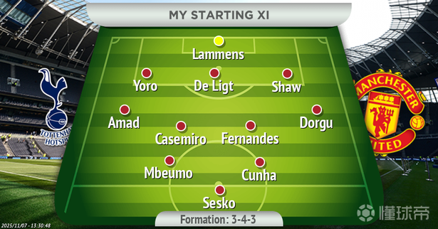 北京时间11月8日,英超第11轮,曼联客场对阵热刺。《曼彻斯特晚报》的记者对本场比赛曼联的首发阵容做出预测。