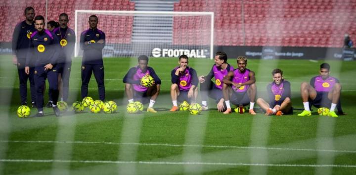 球队分成三组进行抢圈练习,随后进行了一场小规模比赛,分为两队:穿绿色背心的一队和不穿背心的一队,另有两名自由人(德容和奥尔莫)。穿绿色背心的球员包括:费兰、拉明-亚马尔、德罗-费尔南德斯、库巴西、克里斯滕森、巴尔德、卡萨多和埃斯帕特;未穿背心的球员有:阿劳霍、埃里克-加西亚(戴着面具)、拉什福德、托尼-费尔南德斯、贝尔纳尔、费尔明、巴尔德吉、莱万多夫斯基和霍夫雷-托伦茨。