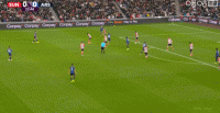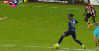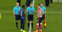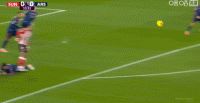 第34分钟,扎卡被判犯规,随后欲找倒地的梅里诺理论