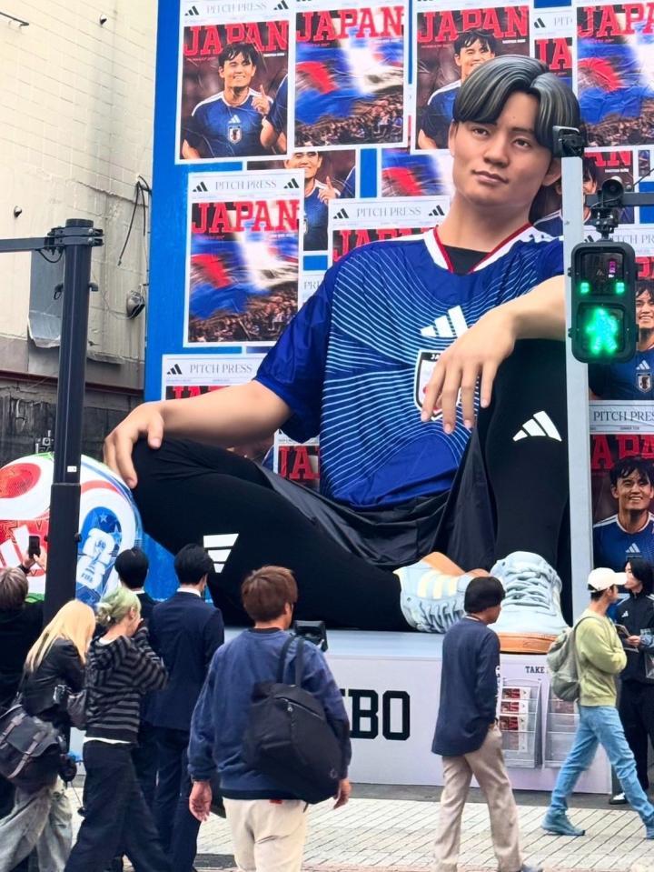 久保建英表示:“今天早上我特意早起,去了一趟涩谷,真的太大了。虽然周围空间很宽敞,但雕像看起来还是有点拥挤(笑)。”