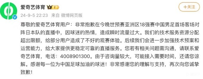 在业内看来,体育版权市场的运营并非易事。2024年,爱奇艺体育曾因世界杯亚洲区预选赛18强赛的直播问题引发用户不满。
