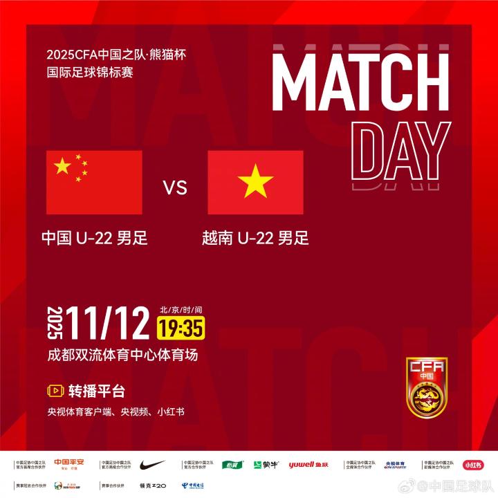 官方消息,央视体育客户端、央视频与小红书将转播熊猫杯首轮中国U22vs越南U22的比赛。