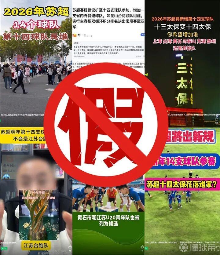 近期,各社交平台流传2026年“‘苏超’将新增第十四支球队”,网友还自发为“候选队”提名排序,传得和真的一样,引发广泛讨论。但经核实,这一说法并无官方依据,纯属网友趣味脑洞。