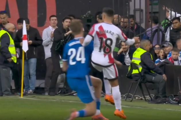 西甲第12轮,皇马客场0-0战平巴列卡诺,比赛第35分钟,赫伊森在边路铲倒阿尔瓦罗-加西亚,后者痛苦倒地,裁判果断对赫伊森出示黄牌。