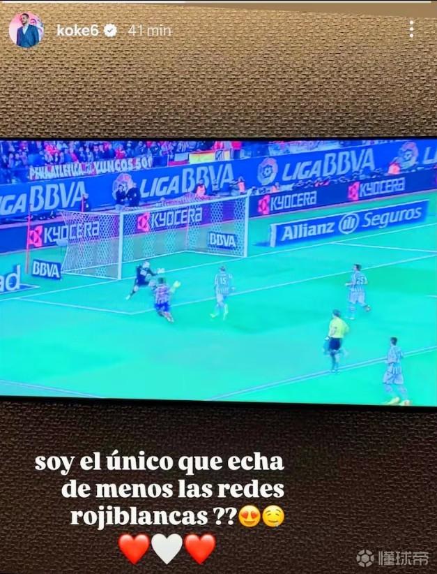 科克在社交媒体上晒出了自己观看马竞在卡尔德隆球场对阵贝蒂斯比赛的照片,并配文:“难道只有我一个人想念那些红白相间的球网吗?”