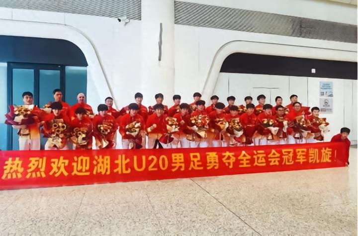 据《武汉晨报》报道,11月13日下午,在全运会夺得金牌的湖北U20男足乘机返回武汉,近百位亲属、球迷和梯队小队友们拉起横幅、手捧鲜花迎接他们凯旋。湖北U20男足球员孙康博表示:“大家都不看好我们,但偏偏我们最争气!”