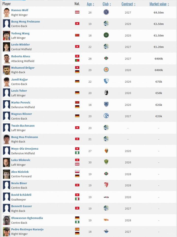 德转市场网显示,在ESM代理的球员中,身价最高的球员沃尔夫今年26岁,身价450万欧元,目前在纽约城踢球;18岁的瑞士小将邦格-弗莱曼身价第二高,目前效力于瑞士超球队卢塞恩。王钰栋签约后,将成为ESM公司里德转身价第三高的球员。目前ESM代理的球员主要效力于德国和瑞士联赛。