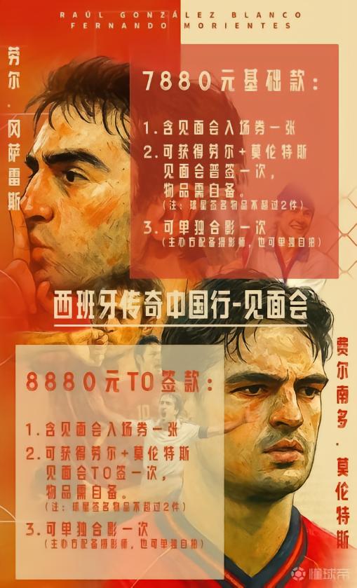 基础款(7880元):普签1次(劳尔+莫伦特斯各签1件自备物品)+ 单独合影1次。