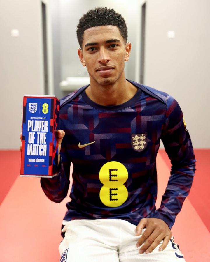 欧洲区世预赛,英格兰队客场2-0击败阿尔巴尼亚,以八战全胜且零封的完美战绩结束本届世预赛。贝林厄姆当选英格兰队内本场最佳球员。