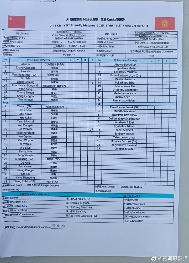 完成这场与吉尔吉斯斯坦U18的比赛后,U18国青将结束此次上海集训。
