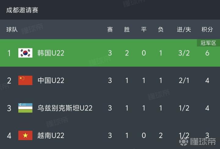 韩国U22在本届熊猫杯中2-0战胜乌兹别克斯坦U22,1-0战胜越南U22,0-2不敌中国U22,三场比赛两胜一负夺冠。中国U22则是2-0胜韩国U22,0-0平乌兹别克斯坦U22,0-1负越南U22,三战一胜一平一负排名第二。