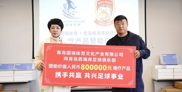 来自青岛西海岸足球俱乐部的官方报道,青岛西海岸足球俱乐部和青岛国瑞体育举行了赞助签约仪式,国瑞体育向青岛西海岸足球俱乐部赞助的康复理疗产品总价值达80万元。