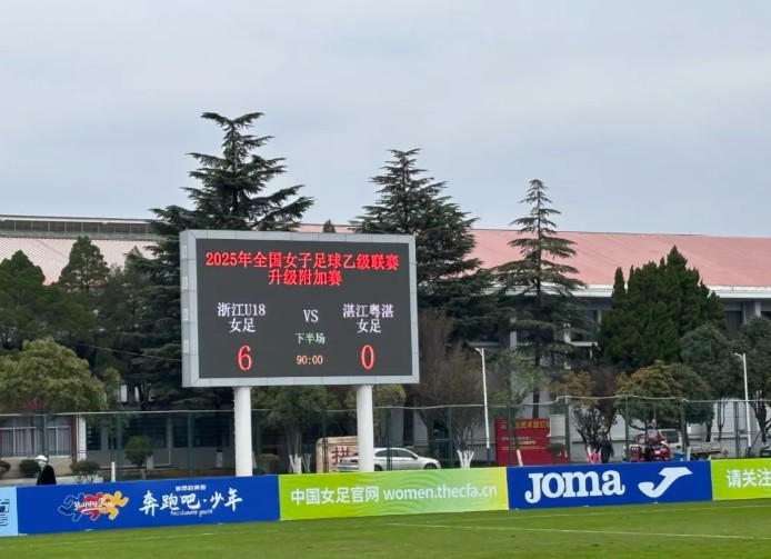 11月19日下午,在女乙联赛升级附加赛中,浙江杭州U18女足凭借陈俊吉的梅开二度以及薛佳宜、刘雨欣、朱璨和陈钰荧的进球,以6-0的比分大胜湛江粤湛女足,成功获得2026年中国女子足球甲级联赛参赛资格。