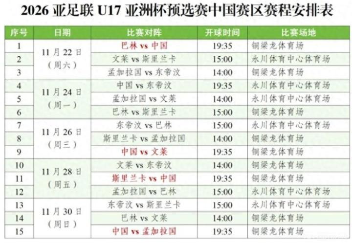 铜梁区融媒体中心报道,U17亚洲杯预选赛即将拉开战幕,中国U16男足国家队将在铜梁龙体育场进行4场比赛,届时璧铜线将加开列车。