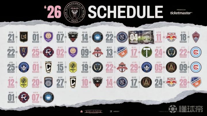 北京时间11月21日,迈阿密国际官方公布了他们2026赛季美职联常规赛的赛程安排,他们的首场比赛将是当地时间明年2月21日做客挑战拥有孙兴慜的洛杉矶,而他们新赛季的首个主场比赛则是4月4日主场对阵奥斯汀。