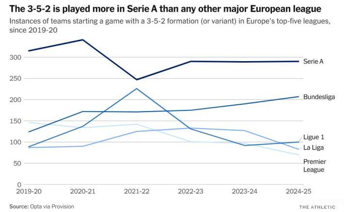 近日,The Athletic发布战术专题深度解析了近年来重获青睐的3-5-2阵型体系。该文从这一经典阵型的意大利足球根源入手,系统梳理了其在不同时期的战术演变,同时剖析了该体系在构建防守稳定性与进攻效率方面的独特优势,也指出了其在现代足球环境中的战术局限性,以下为专题文章。