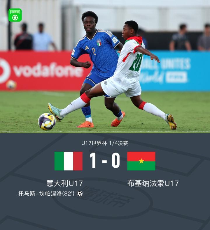意大利U17 1-0布基纳法索U17晋级四强,坎帕涅洛制胜