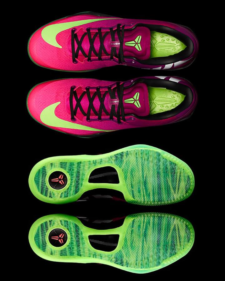 该鞋款配色的设计灵感来源于刺客Vapor足球鞋的设计元素,彰显科比对足球的热爱。