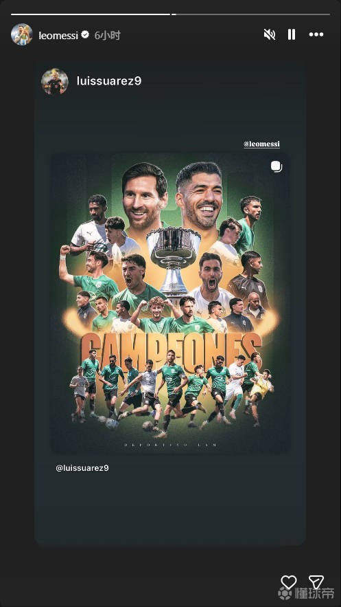 北京时间11月23日,苏亚雷斯和梅西分别在社交媒体上发表动态,庆祝他们组建的球队LSM竞技赢得联赛冠军,并完成升级。