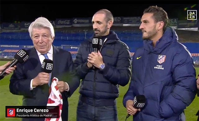 客战赫塔费,马竞队长科克以一场胜利为自己的700场纪念画下圆满句号。赛后,马竞主席塞雷佐为他送上纪念球衣并发表致辞。