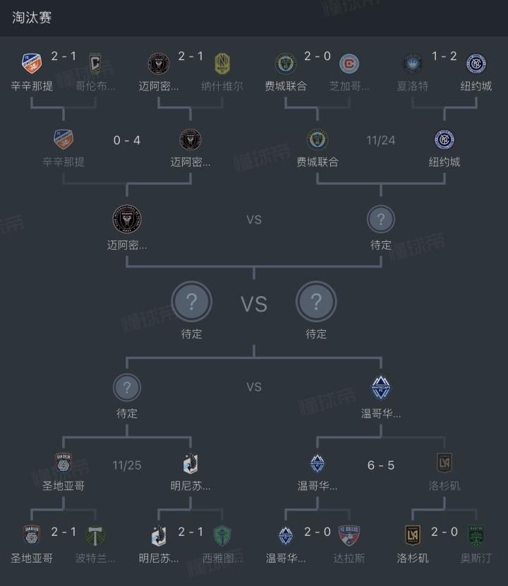 在西部赛区,穆勒领衔的温哥华白浪已率先晋级半决赛,另一名额将在圣地亚哥和明尼苏达联之间产生。