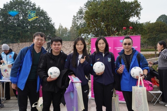 活动中还特别设置了“寻找绿背心NPC”的互动任务。参与者们在徒步过程中寻找身穿绿色背心的工作人员,回答与女足、西湖文化相关的问题,答对即可获得一枚标签,集齐三枚便可兑换一个珍贵的浙江杭州银行女足全队签名足球。这份惊喜,让徒步变成了一场有趣的探险,也拉近了女足姑娘与球迷间的距离。