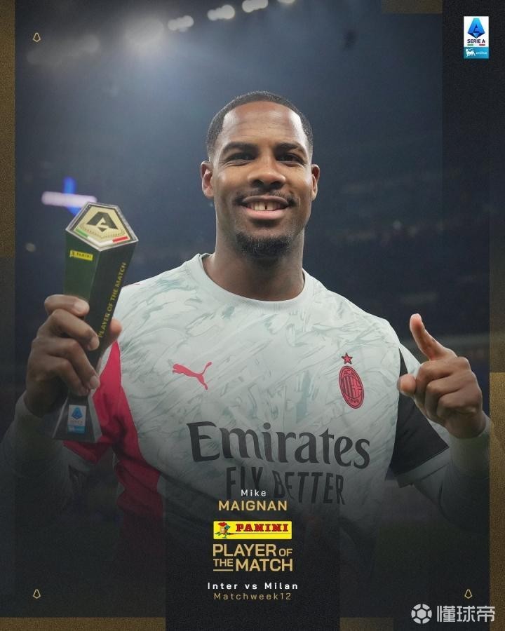 米兰门将迈尼昂本赛季表现出色,这不仅体现在他周日对阵国际米兰时扑出点球,他在本月早些时候对阵罗马的比赛中,就曾扑出迪巴拉的点球,帮助球队取得了又一场1-0的胜利。