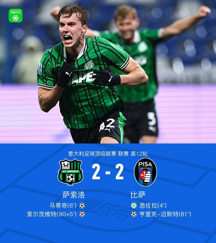 萨索洛2-2比萨,恩佐拉破门,索尔茨维特救主