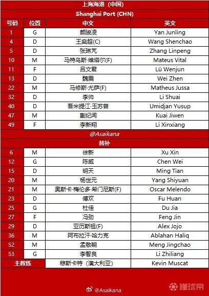 北京时间11月25日18:00,亚冠精英联赛,上海海港坐镇主场迎战首尔,本场比赛主裁判是沙特裁判胡韦什,VAR是沙特裁判沙赫丹,赛前双方公布首发:
