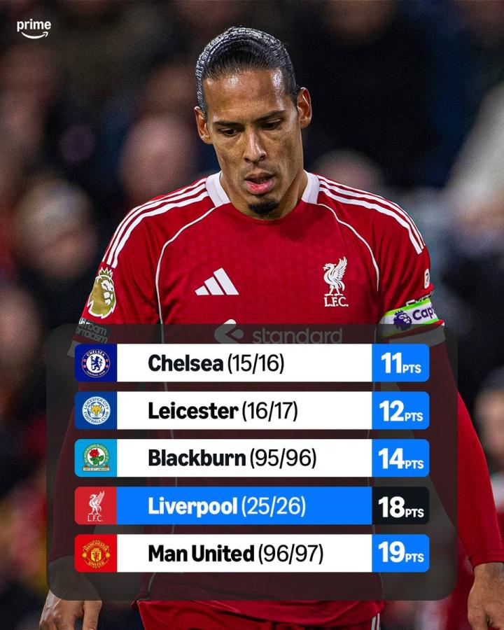 本赛季英超前12轮战罢,作为卫冕冠军的利物浦仅拿到18分,据统计,这是英超历史同期积分第四少的卫冕冠军。