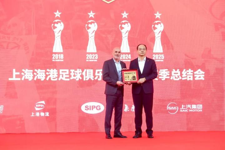 11月29日,上海海港足球俱乐部在主场上汽浦东足球场召开“海港三连冠 四星耀申城”赛季总结会。