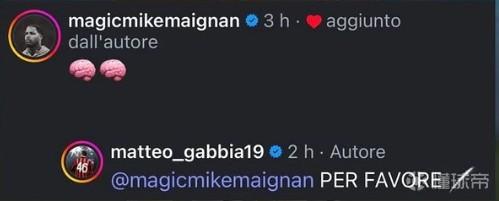 赛后,迈尼昂在加比亚的社媒动态下评论了两个“大脑”表情符号,而加比亚则简单地回复道:“请续约。”