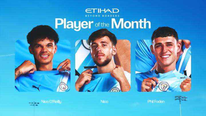 官方消息,曼城11月最佳球员候选名单公布,分别是福登、尼科-奥赖利和尼科-冈萨雷斯。