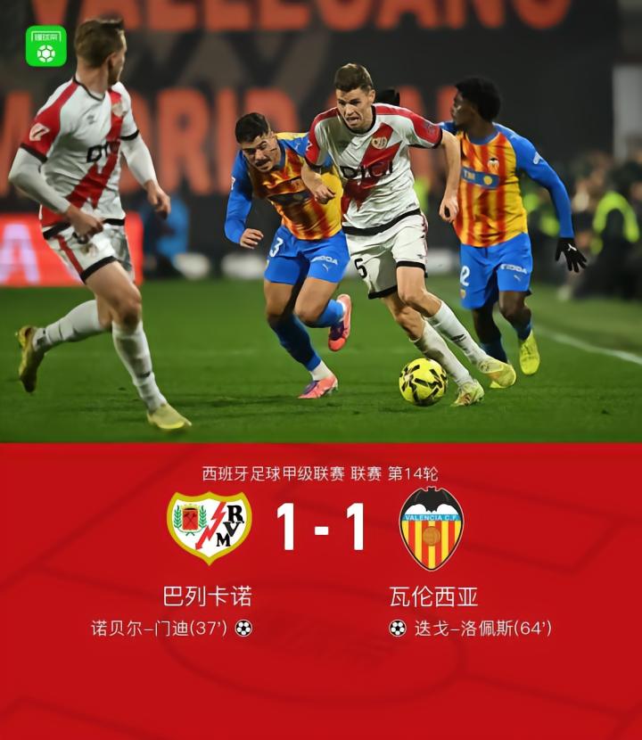 巴列卡诺1-1瓦伦西亚,诺贝尔-门迪首开记录,迭戈-洛佩斯救主