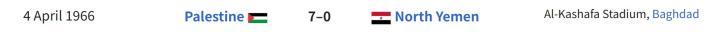 1966年阿拉伯杯是巴勒斯坦队历史上第一次参加阿拉伯杯,球队在小组赛阶段7-0狂胜北也门,也是当届赛事球队的唯一一场胜利。